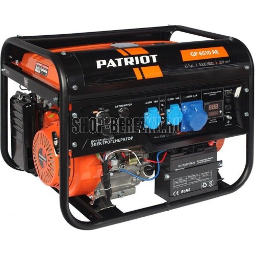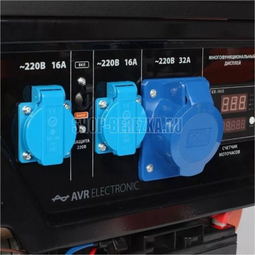 Объем двигателя, см3 389, Макс. мощность, л.с. 13, Тип топлива АИ-92, Объём бака, л 25, Тактность двигателя 4-х тактный, Номинальное напряжение, В 220, Мощность ном/макс, кВт 5.0/5.5, Расход топлива, г/кВт 440, Уровень шума, dB 78, Стартер ручной/электро/автозапуск +АКБ, Вольтметр электронный мультидисплей, Розетки 2 евро 16А, 1 евро 32А, Комплект для транспортировки опция, Выход на 12B .