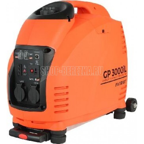 Объем двигателя, см3 149, Тип топлива АИ-92, Объём бака, л 5,7, Тактность двигателя 4-х тактный, Номинальное напряжение, В 220, Мощность ном/макс, кВт 3.0/3.5, Расход топлива, г/кВт 500, Уровень шума, dB 63, Стартер ручной, Розетки 2 евро 16A, Выход на 12B. Комплект для транспортировки.