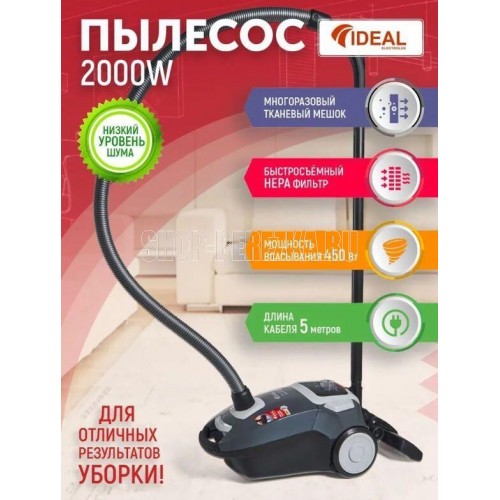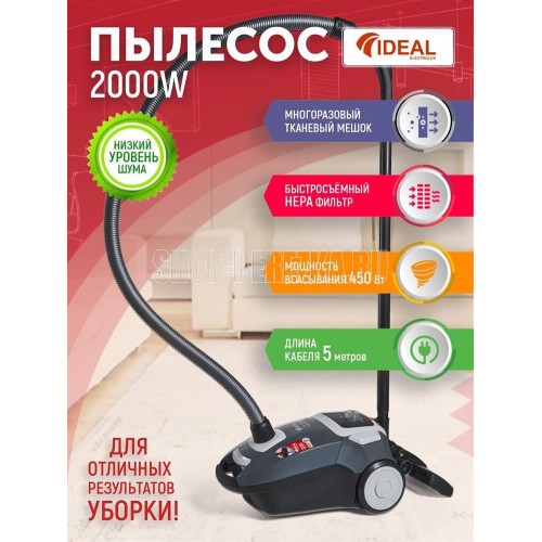 Класс энергопотребления А. Тип пылесоса с мешком. Тип уборки Сухая. Мощность всасывания 450 Вт. Потребляемая мощность 2000 Вт. Объем пылесборника 2,3 л. Регулировка мощности на корпусе. Тип фильтра микрофильтр. Насадки для ламината/ паркета, пол-ковер,щелевая. Дополнительные насадки Щетка для пыли. Фильтрация НЕРА. Длинна шнура 5 метров. Автосматывание шнура есть. Парковка универсальная. Расход воздуха 41л/с. Разрежение 33 кпд. Уровень шума 82дБ. Плавный запуск двигателя SOFТSTART.