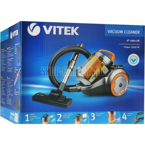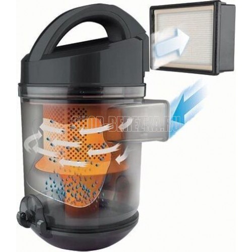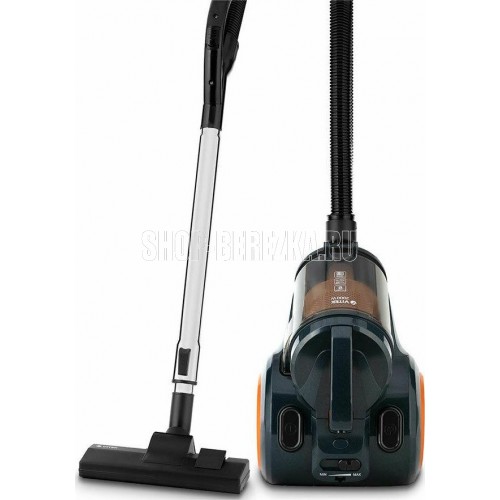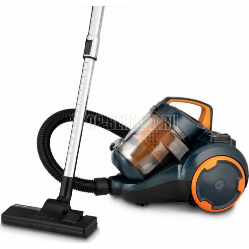 Пылесос циклон. Мощность всасывания: 400 Вт, Объём пылесборника: 2,5 литра, Тип пылесборника: Циклонный фильтр, Труба всасывания: Телескопическая, Длина сетевого шнура: 5 метров, Ножной переключатель вкл./выкл., Питание от сети, Дополнительно: 5-ступенчатая система фильтрации с НЕРА-фильтром, Мультициклонная система без потери мощности всасывания, 2 насадки: комбинированная щетка для пыли/Щелевая насадка, Гарантия 1 год, Номинальная потребляемая мощность: 2000 вт, Цвет: Черный/оранжевый