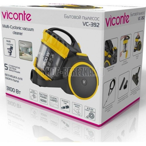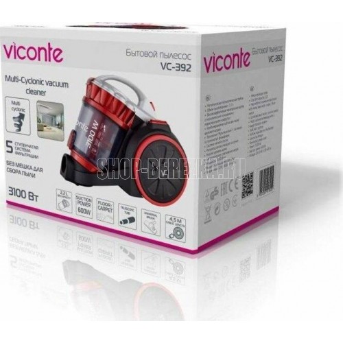 Бытовой пылесос, Мощность 3100 Вт, мощность всасывания - 600Вт, эффективная система очистки воздуха «Мультициклон» с 5-ти ступенчатой системой фильтрации воздуха, лёгкая очистка контейнера, металлическая телескопическая трубка, регулятор потока воздуха на трубке, длина шнура питания 4.5 м, автоматическая смотка шнура. В комплекте: комбинированная щётка с металлическим основанием ковёр/пол, насадка "мебель/щель".