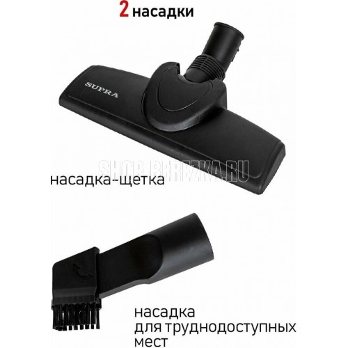 SUPRA VCS-1832 Тип традиционный пылесос Тип уборки сухая Дополнительные функции автоматическое сматывание шнура Тип пылесборника контейнер Объем пылесборника 2 л Потребляемая мощность 1800 Вт Мощность всасывания 360 Вт Фильтр тонкой очистки есть Труба всасывания составная Насадки в комплекте пол/ковёр; щелевая