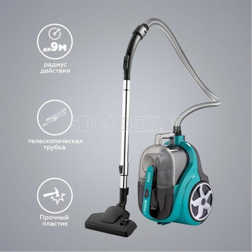 Мощность двигателя — 2100 Вт максимальная мощность всасывания 380 Вт Регулировка мощности всасывания - нет длина шнура — 5 м Радиус действия, м - до 8 м объем контейнера для сбора пыли - 2,5 л Система фильтрации - Extreme CYCLONE Количество ступеней фильтрации воздуха - 4 уровень шума ? 72 дБ Автоматическое сматывание шнура Вертикальная парковка Горизонтальная парковка HEPA фильтр Цвет - зеленый Металлическая телескопическая трубка (мин/макс), см - 50 / 82 гофрированный шланг, см - 194 Габариты в упаковке, мм - 435x345x335 Вес нетто/бруто, кг - 4,9 / 6,9 Комплект насадок: универсальная щетка «пол/ковер» Щелевая насадка Насадка для мебели