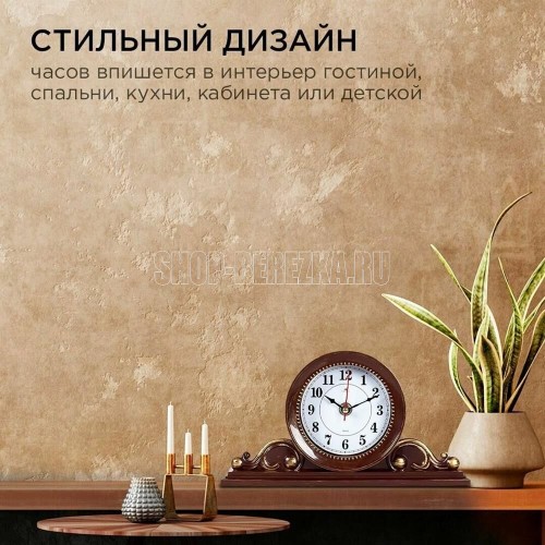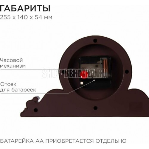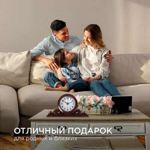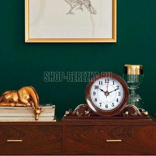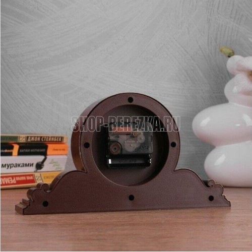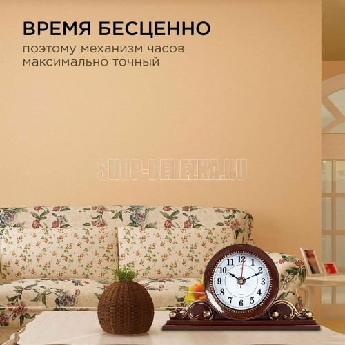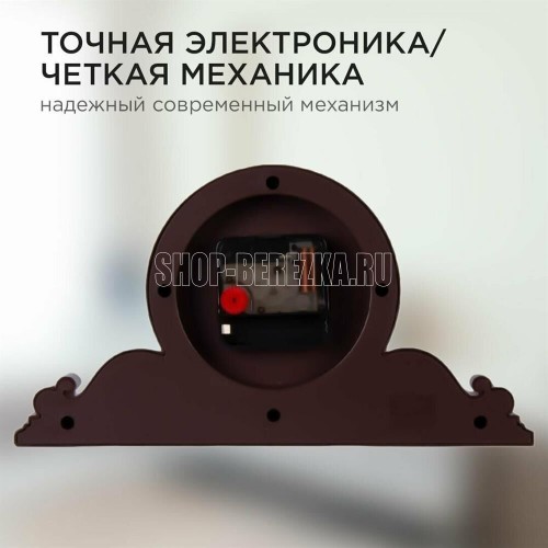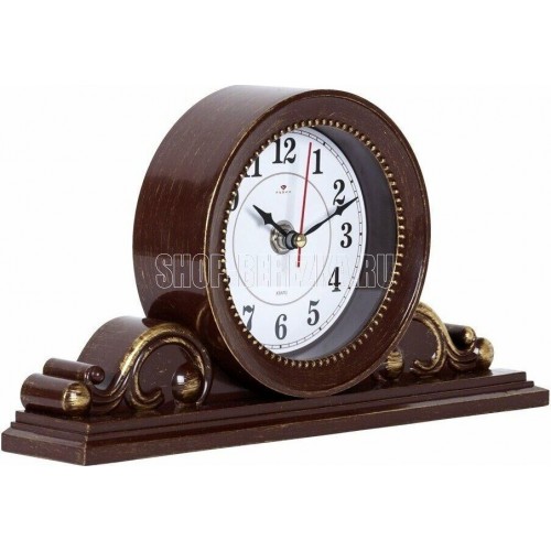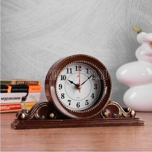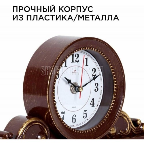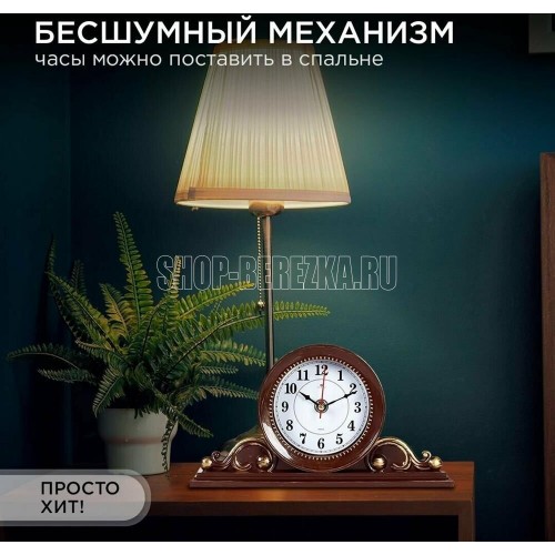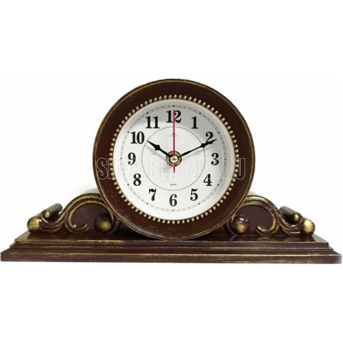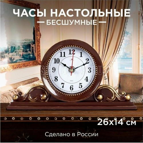 2514-005 (10) Часы настольные 26х14 см, корпус коричневый с золотом "Классика" С плавным ходом Пластмасса, стекло, металл