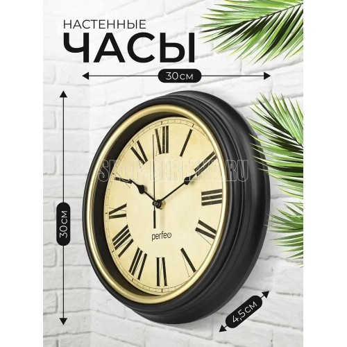 PERFEO (PF_E2064) "PF-WC-022"(С2), круглые д. 30 см, коричневый корпус / бежевый циферблат