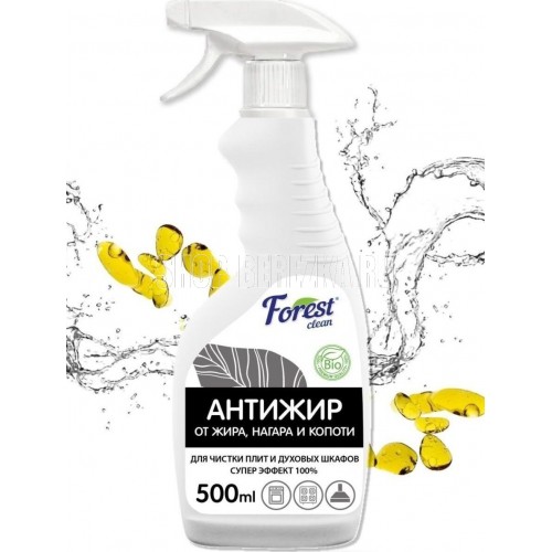 FOREST CLEAN Антижир 500 мл Жидкое высокощелочное средство для удаления жира, нагара, копоти, для ручной чистки кухонных плит, грилей, духовых шкафов, вытяжек, противней, вытяжных зонтов, фритюрниц и жарочного оборудования. Антижир / антипригар / жироудалитель эффективно очищает от пригоревших и присохших жиров, масел, сахара на стеклокерамике, качественной нержавеющей стали, хромированных, никелированных и других поверхностях. Удаляет неприятные запахи, загрязнения от нефтепродуктов. Легко смывается, не оставляя плёнок, царапин, разводов, а также препятствует повторному осаждению загрязнений. Не оставляет царапин и разводов. Удобно использовать при чистке вертикальных поверхностей. При очистки грилей, плит, жарочного оборудования, вытяжек и другого оборудования необходимо распылить средство на охлажденную поверхность и через 5-15 минут разтереть и удалить грязь губкой, смыть водой и вытереть насухо. Во время применения использовать перчатки.