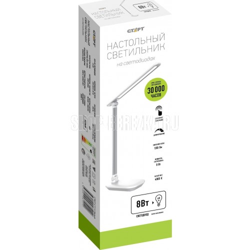 Потребляемая мощность 8W Световой поток 550Лм Материал корпуса металл + пластик Сенсорный выключатель, с диммером Цвет: белый, Размер: 285*110*385мм Длина шнура 1,5м