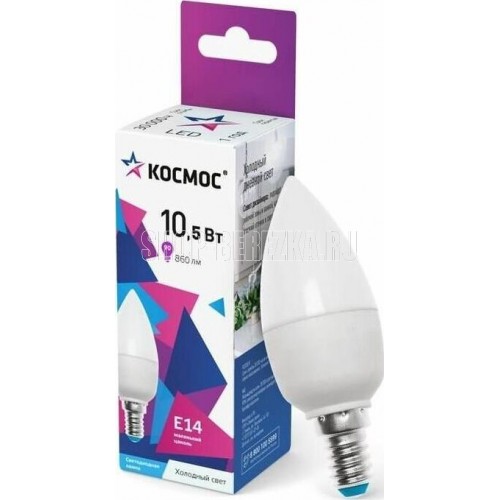 Светодиодная лампочка 10,5 Вт является аналогом лампы накаливания «свеча» 90 Вт – для средней комнаты понадобится 3 таких лампочки. Стабильный свет без падения яркости в течение всего срока службы (30 000 часов) – за счет использования светодиодов известн