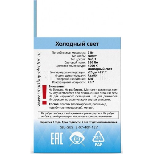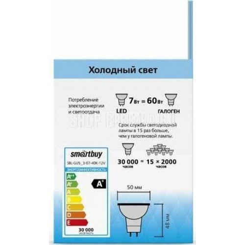 SMARTBUY (SBL-GU5_3-07-40K-12V) 7W/4000K/GU5.3