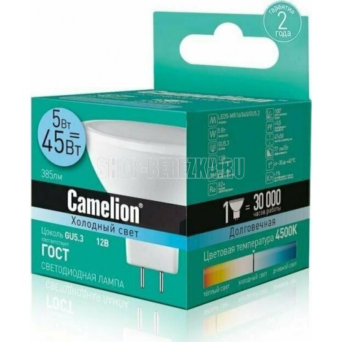 CAMELION (12026) LED5-MR16/845/GU5.3/5Вт