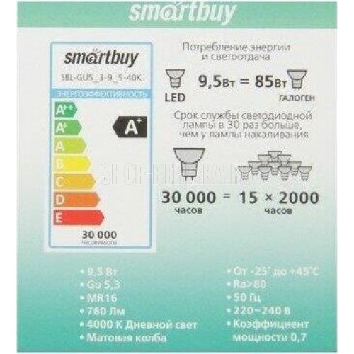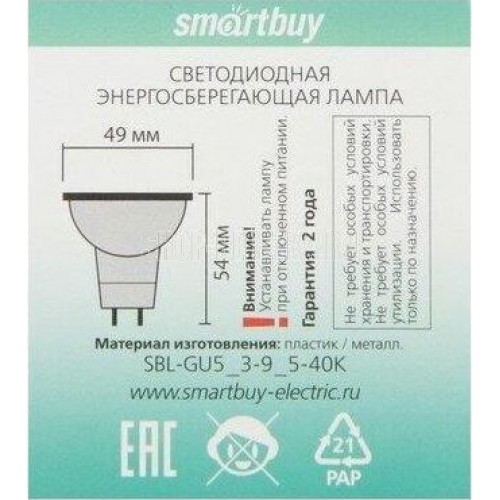 SMARTBUY (SBL-GU5_3-9_5-40K) 9.5W/4000K/GU5.3