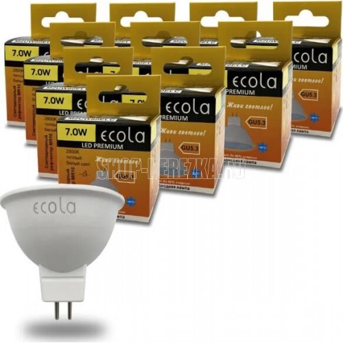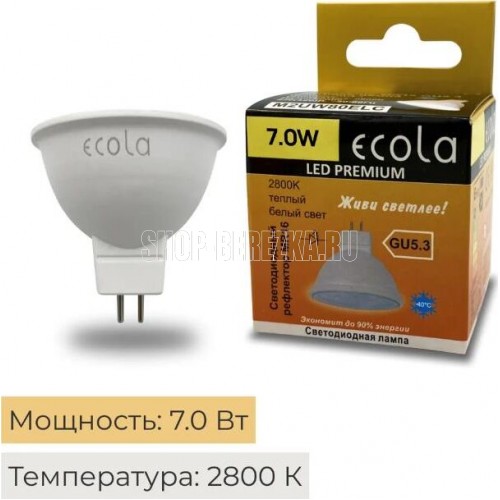 ECOLA MR16 LED Premium 7,0W 220V GU5.3 2800K матовое стекло (композит) 48x50 Цоколь GU5.3 Цветовая температура 2800К Мощность 7,0W Напряжение 220В Размер 48x50 мм