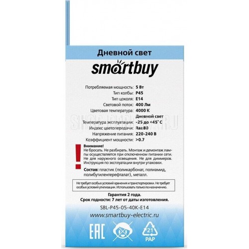 SMARTBUY (SBL-P45-05-40K-E14) 5W/4000/E14