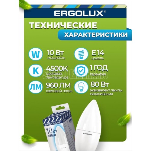 ERGOLUX (14545) LED-C35-10W-E14-4K