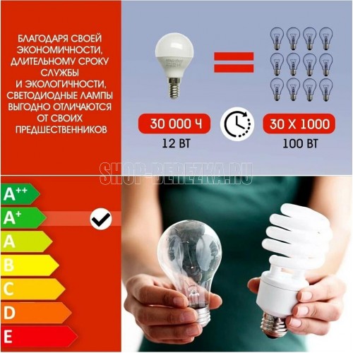 Характеристики SBL-P45-12-60K-E14 Мощность, Вт 12 Высота, мм 86 Аналог лампы накаливания 100 Диаметр, мм 45 Диапазон рабочих температур - 25..+50°C Индекс цветопередачи, CRI Ra>80 Материал Пластик+металл Колба Матовая Напряжение, В 220-240 В Световой поток, лм 960 Светоотдача 80 Совместимость с выключателем с подсветкой нет Срок службы 2 года Форма колбы Шар Цветовая температура, К 6000 Тип цоколя Е14