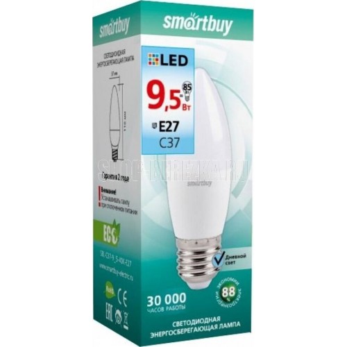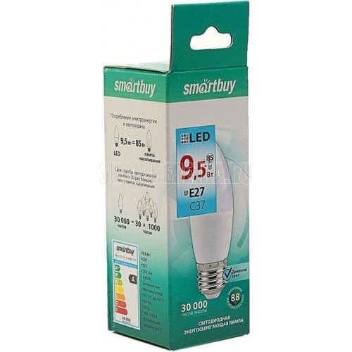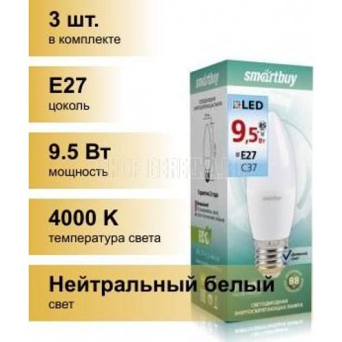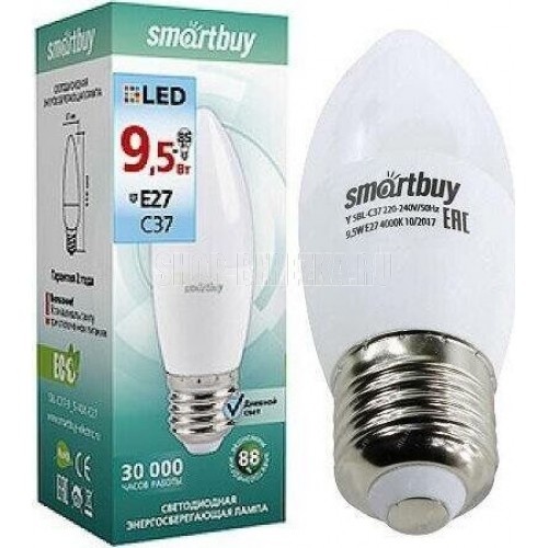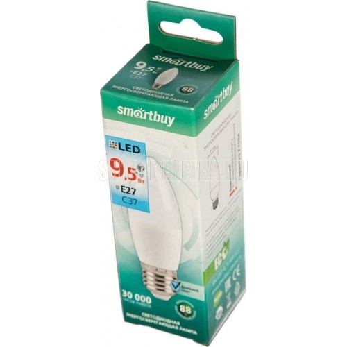 ОБЩИЕ Лампа светодиодная SmartBuy SBL 4000K, E27, C37, 9.5Вт