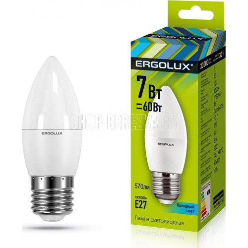 | ОБЩИЕ | Лампа Ergolux E27 C35 7Вт 4500K |