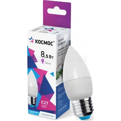 Светодиодная лампочка 8,5 Вт является аналогом лампы накаливания «свеча» 70 Вт – для средней комнаты понадобится 3 таких лампочки. Стабильный свет без падения яркости в течение всего срока службы (30 000 часов) – за счет использования светодиодов известны