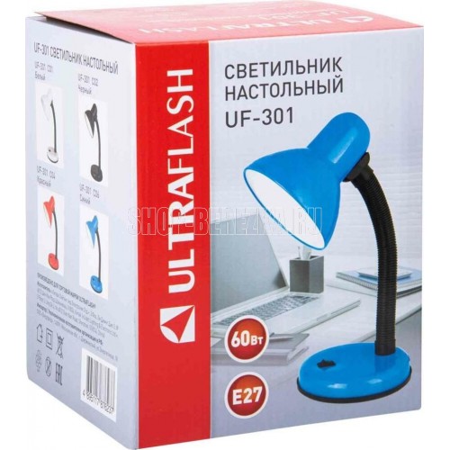 Светильник настольный Ultraflash UF-301 (230V, 60W) С06 синий, размер 190х140х140мм, источник света - ЛОН, тип лампы - 60/А/Е27, патрон - E27, мощность 60Вт, ~230В, 50Гц.
