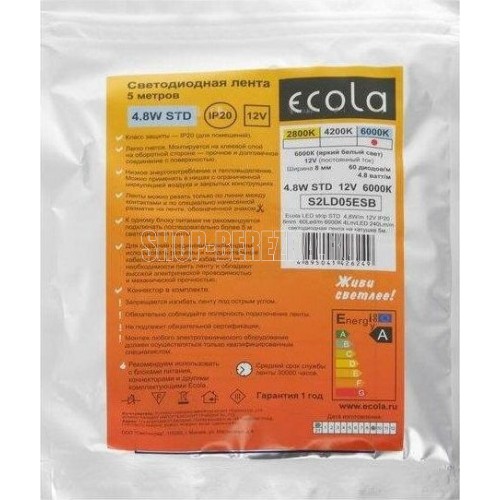 ECOLA S2LD05ESB STD 4,8W/m 12V IP20 8mm 60Led/m 6000K 5м
