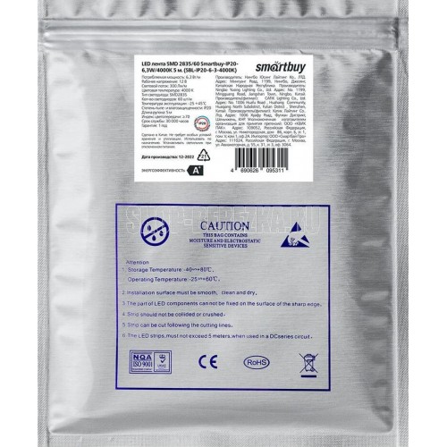 SMARTBUY (SBL-IP20-6-3-4000K) LED лента SMD 2835/60-IP20-6,3W/4000K 5 м