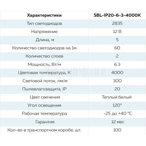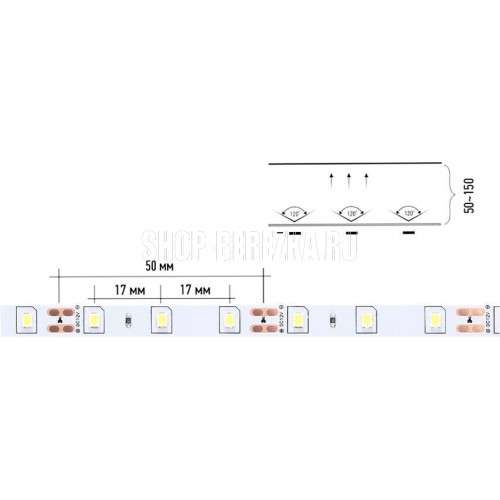 Кол-во диодов: 60 SMD(2835)/м, 4000К Мощность: 6,3 Вт/1 м, Напряжение: 12 В Катушка 5 м, Пылевлагозащита IP20, Двухслойная, 300 лм/м