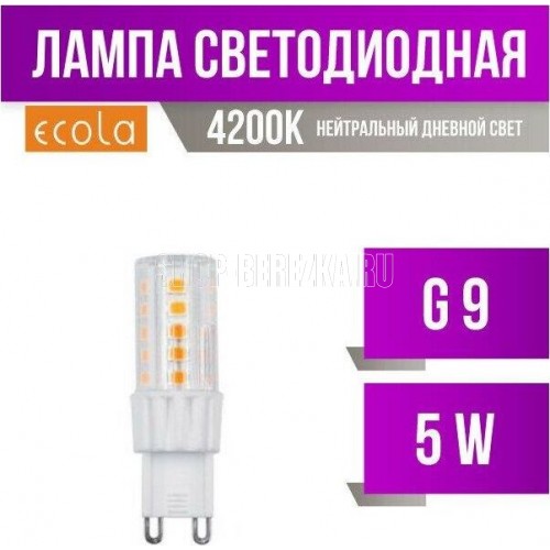 Цоколь G9, Мощность 5,0W, Цветовая температура 4200K, Размер 58x16 мм, Напряжение 220В, Срок службы 30000 часов.