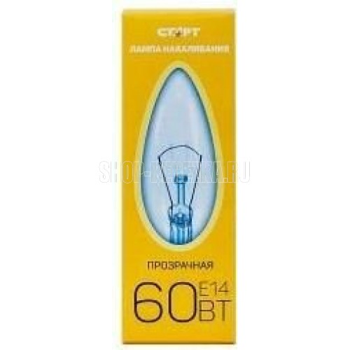 Лампа накаливания. Индивидуальная упаковка из картона. Колба - свеча прозрачная. Мощность 40 Вт. Цоколь Е27.