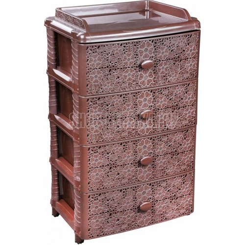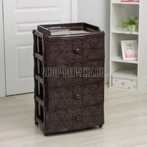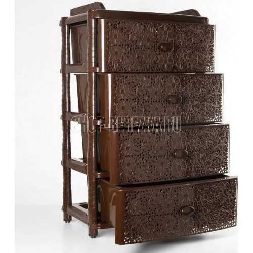 Вес 6.2 кг Размеры изделия (ДхШхВ) 245х560х925 мм Изделие способно гармонично вписаться в интерьер любой комнаты. Комод произведен из высококачественного и безопасного полипропилена. При производстве используется только сертифицированное и экологически чистое, качественное сырье отечественных и зарубежных производителей. Данное изделие произведено на современном технологичном оборудовании, а потому отличается прочностью и устойчивостью разнообразным механическим воздействиям. Также особую прочность изделию придает цельная конструкция перегородок. Комод имеет четыре выдвижных ящика, большой вместимости, в которых будет очень удобно хранить личные вещи и другие принадлежности. Благодаря небольшому весу, комод очень легко передвигается . Комод упаковывается в индивидуальную упаковку, где каждый клиент сможет найти и инструкцию по сборке.