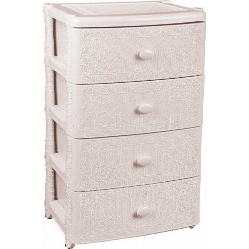 Изделие способно гармонично вписаться в интерьер любой комнаты. Комод произведен из высококачественного и безопасного полипропилена. Комод имеет четыре выдвижных ящика, большой вместимости, в которых будет очень удобно хранить личные вещи и другие принадлежности. Вес 6.2 кг. Размеры изделия (ДхШхВ) 425х560х925 мм.
