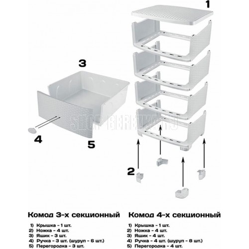 Цвет белый. Размер 470 x 390 x 960 мм. Материал Полипропилен. Комод из пищевого пластика с четырьмя ..