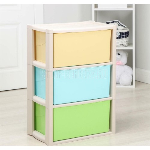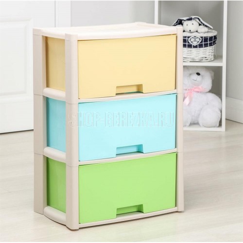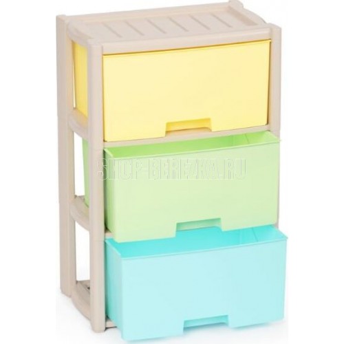 Комод "Колорит" цветной, 3-х секционный, Вес 3.085 кг, Размеры изделия (ДхШхВ) 475х300х710 мм. Комод произведен из высококачественного и безопасного полипропилена. Особую прочность комоду придает его цельная конструкция перегородок. Комод имеет выдвижные и достаточно вместимые ящики. На крышке и перегородках предусмотрены ограничители, благодаря которым ящик не будет вылетать при открывании. Такой комод станет отличным решением для организации хранения практически в любой комнате вашей квартиры или дома. Благодаря цветовому решению и современному дизайну, комод гармонично впишется в интерьер любой комнаты. Благодаря небольшому весу и компактному размеру, комод легко устанавливается и передвигается. Комод упаковывается в индивидуальную упаковку и будет поставляться уже в собранном виде.