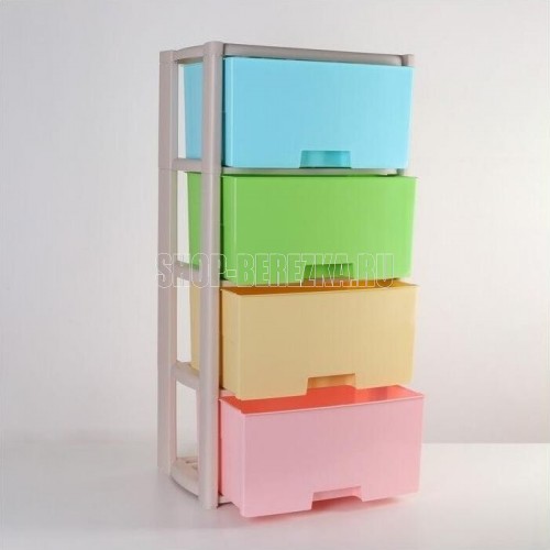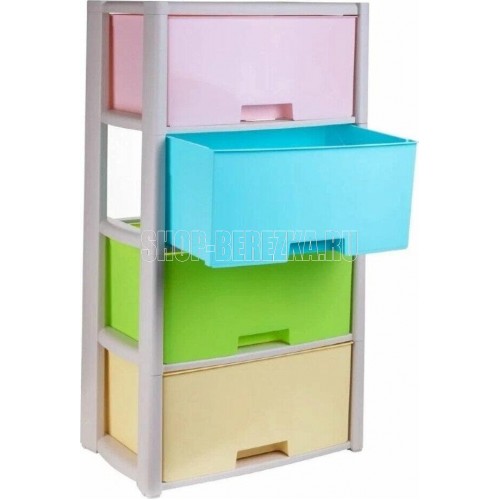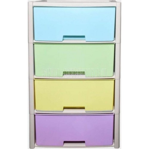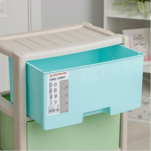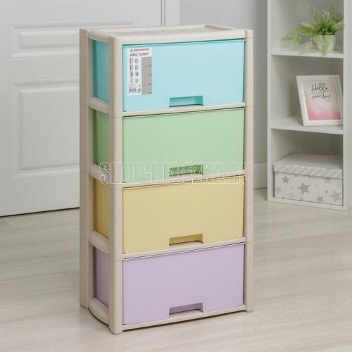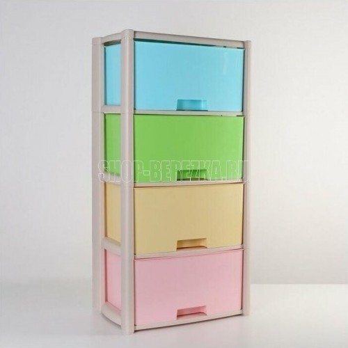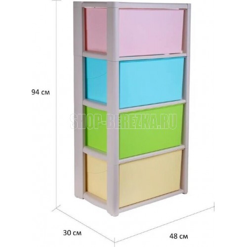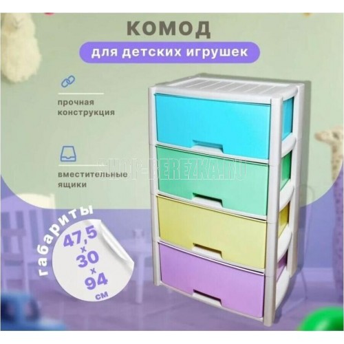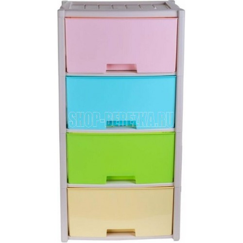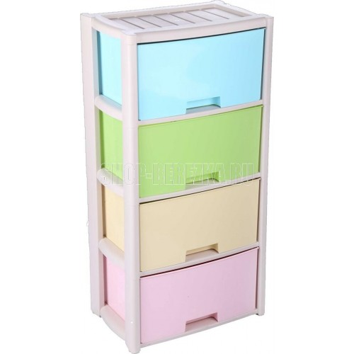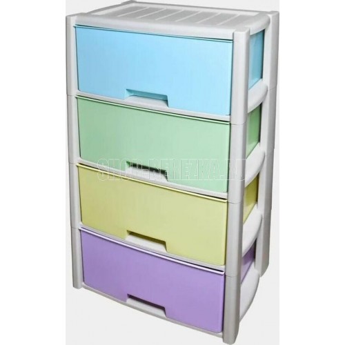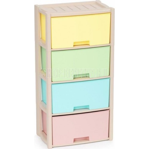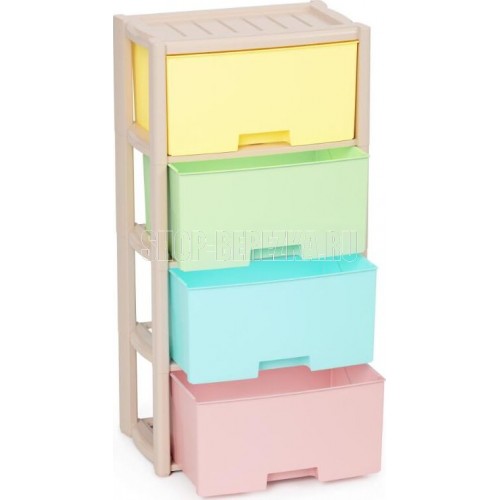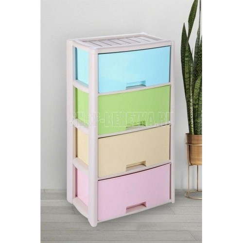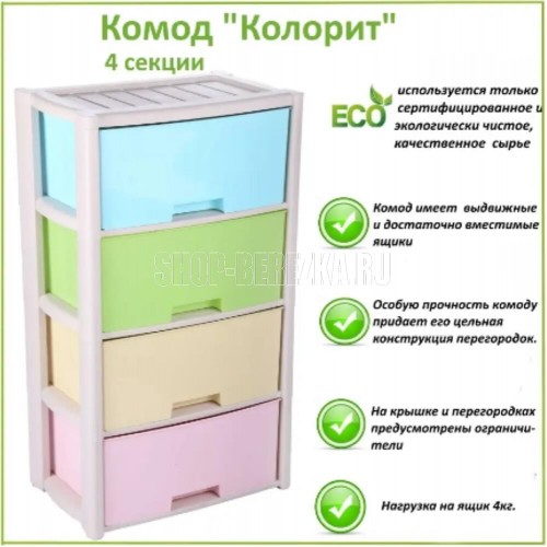 Комод "Колорит" цветной, 4-х секционный, Вес 4.012 кг, Размеры изделия (ДхШхВ) 475х300х940 мм. Комод произведен из высококачественного и безопасного полипропилена. Особую прочность комоду придает его цельная конструкция перегородок. Комод имеет выдвижные и достаточно вместимые ящики. На крышке и перегородках предусмотрены ограничители, благодаря которым ящик не будет вылетать при открывании. Такой комод станет отличным решением для организации хранения практически в любой комнате вашей квартиры или дома. Благодаря цветовому решению и современному дизайну, комод гармонично впишется в интерьер любой комнаты. Благодаря небольшому весу и компактному размеру, комод легко устанавливается и передвигается. Комод упаковывается в индивидуальную упаковку и будет поставляться уже в собранном виде.