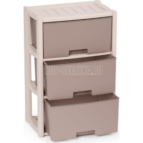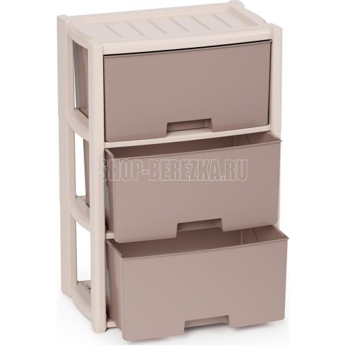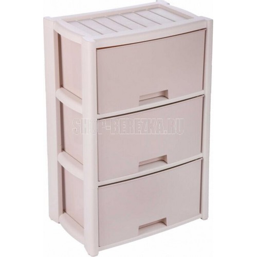 Вес 3.09 кг Размеры изделия (ДхШхВ) 475х300х710 мм 3-х секцион. Цвет бежевый. Комод произведен из высококачественного и безопасного полипропилена. Особую прочность комоду придает его цельная конструкция перегородок. Комод имеет выдвижные и достаточно вместимые ящики. На крышке и перегородках предусмотрены ограничители, благодаря которым ящик не будет вылетать при открывании.