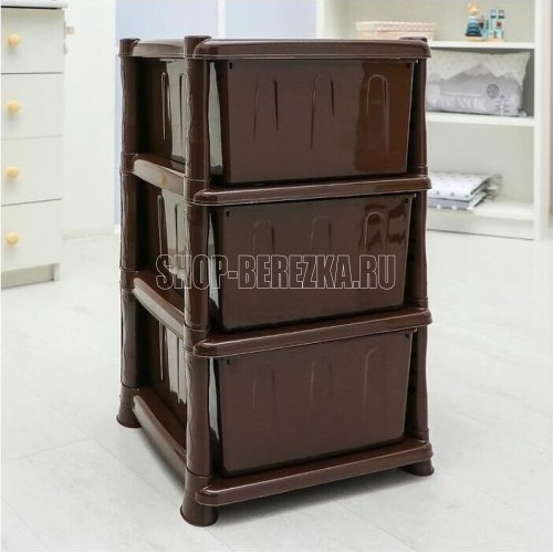 ЦВЕТ: коричневый. РАЗМЕР ИЗДЕЛИЯ: 470 x 390 x 730 мм. МАТЕРИАЛ: Полипропилен. Комод из пищевого пластика с тремя выдвижными ящиками предназначен для хранения вещей и продуктов питания и гармонично впишется в интерьер любой комнаты. Легкий и вместительный комод поможет обеспечить порядок, избавит от разбросанных игрушек или одежды, убережет продукты от пыли и заветривания.