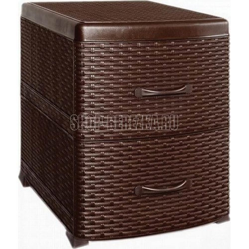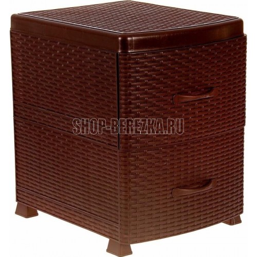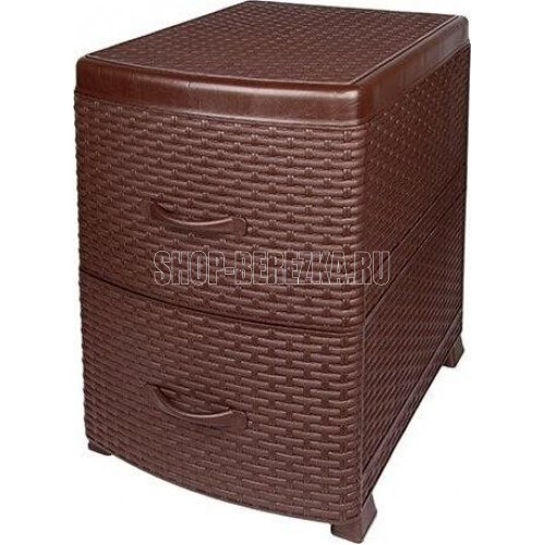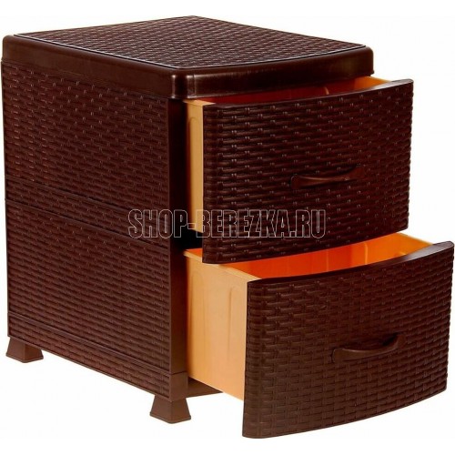 ЦВЕТ: коричневый. РАЗМЕР ИЗДЕЛИЯ: 480 x 380 x 520 мм. МАТЕРИАЛ: Полипропилен. Комод-тумба из пищевого пластика с двумя выдвижными ящиками предназначен для хранения вещей и продуктов питания и гармонично впишется в интерьер любой комнаты. Особенно гармонично будет смотреться в спальне, выполняя функцию прикроватной тумбочки.