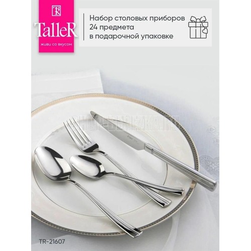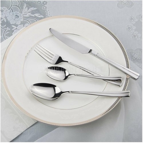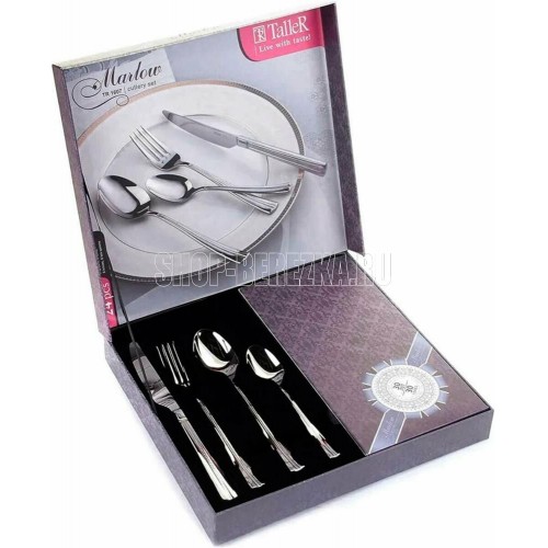 Столовый набор Марлоу, 24 предмета 6 ложек столовых, 6 ложек чайных, 6 вилок, 6 ножей Столовые предметы (кроме ножей) изготовлены из высококачественной нержавеющей стали марки 18/10 Ножи выполнены из высококачественной легированной стали марки 420S37 (2Cr
