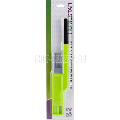 HOMESTAR HS-1205 зеленая Назначение для газовых плит Вес нетто, кг 0,067 Тип зажигалка Материал корпуса пластик Цвет синий Тип поджига пьезоэлектрический Ветроустойчивость да Габариты без упаковки, мм 3x66x44