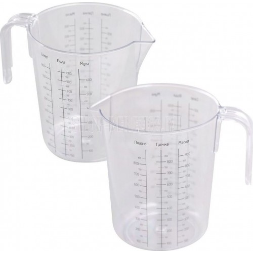 Мерная кружка-один из главных помощников любой хозяйки на кухне. У кружки имеется удобная ручка и носик для переливания и пересыпания продуктов. Мерная кружка имеет мерную шкалу и подходит для измерения сыпучих продуктов: муки, сахара, пшена, гречки, а также для измерения жидких продуктов-воды, растительного масла, сиропа, рассола и т. п. Прозрачные стенки кружки позволяют контролировать процесс измерения. Лаконичный дизайн прекрасно впишется в интерьер любой кухни. Изготовлено из пластмассы (полистирол).