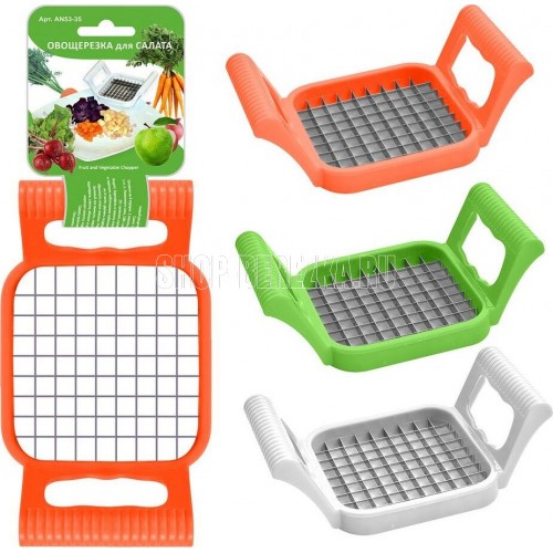 Овощерезка для салата предназначена для нарезки овощей и фруктов аккуратными кубиками. Простое и функциональное приспособление выручит во время приготовления салатов, сделает процесс гораздо быстрее и проще. Характеристики: изготовлена из нержавеющей стали и пластмассы; имеет острые лезвия, которые отлично справляются с вареными продуктами или с нетвердыми свежими; ячейки 10х10 мм. Основные преимущества: позволяет быстро справиться с большими объемами продуктов. Это особенно удобно, когда нужно готовить много разных салатов на праздничное застолье; используется для самых разных продуктов: вареной свеклы, картофеля, моркови, свежих нетвердых огурцов, фруктов, а также сыра и яиц; имеет прочную цельную конструкцию, которой легко пользоваться. Изделие не нуждается в особом уходе, его достаточно промывать в воде с моющими средствами и с губкой; инструмент не занимает много места, его удобно хранить на полке, в ящике шкафа, на крючке на рейлинге.