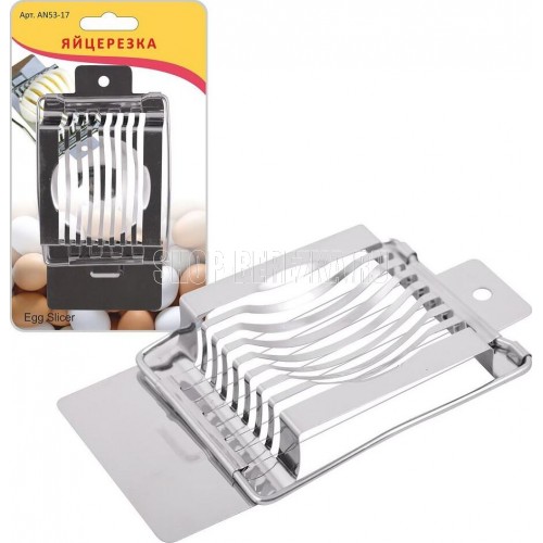 Простая и нужная вещь в хозяйстве – металлическая яйцерезка. Это приспособление мгновенно и ровно разрезает яйца с помощью стальных струн. Характеристики: надежная конструкция, изделие изготовлено из стали; режущий инструмент – стальные струны аккуратно разрезают яйцо, вареные овощи или мягкие фрукты на тонкие ломтики; продукты не сминаются и не оставляют крошек; изделие не ржавеет, не темнеет со временем. Конструкция занимает мало места, удобна в хранении, яйцерезку можно повесить на гвоздь или на крючок. Размер: 8х14х2,5 см. Материал: корпус из хромированной стали, струна из нержавеющей стали. После использования промывайте изделие с моющими средствами.Яйцерезка (метал.) AN53-17 Материал: Металл (Нерж.сталь), Металл (Сталь хромированная) Размер: 7 х 14,5 см.