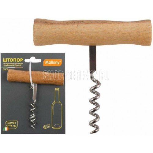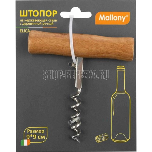 MALLONY Штопор ELICA, размер: 9*9 см, из нержавеющей стали с деревянной ручкой (985955)