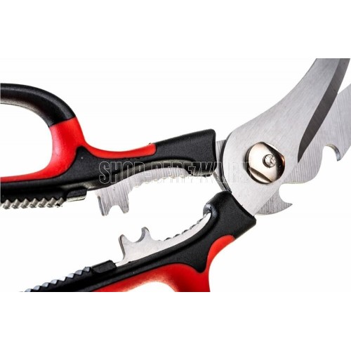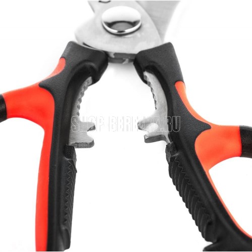 Материал - Нержавеющая сталь 2CR14. Толщина лезвия - 3,0 мм. Покрытие – Матовое. Рукоятка - PP + TR. Мытье - В посудомоечной машине, Ручная мойка. Особенности - Косторез, Кусачки, Орехокол, Открывашка для бутылок