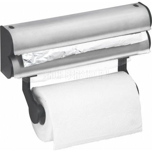 Держатель UniStor Mario настенный, предназначен для 3 рулонов (фольга, пищевая плёнка и бумажное полотенце), изготовлен из нержавеющей стали и пластика. Интегрированные в крышку зубчатые ножи позволяют легко обрезать фольгу и плёнку. Удобно в использования, стильный дизайн, идеально впишется на вашей кухне. Размер товара 34*20*9 см.
