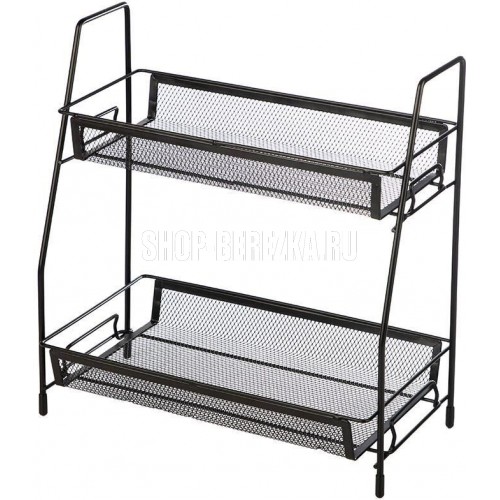 Настольная этажерка поможет сэкономить место на вашей кухне. Позволит организовать многоуровневое хранение. 2 полки разной ширины. Пластиковые ножки сберегут столешницу от царапин. Размер: 31,5*17*33 см. Материал: металл с порошковым покрытием, пластмасса.