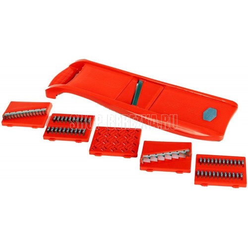 Овощерезка, 6 насадок Материал: АБС пластик, нержавеющая сталь Цвет: красный В комплекте: основа для насадок 6 насадок: - насадка для приготовления пюре; – насадка крупная для корейских салатов; – насадка мелкая для корейских салатов; – насадка для приготовления картофеля фри; – насадка для салатов; – насадка для шинкования; Упаковка: термоусадка