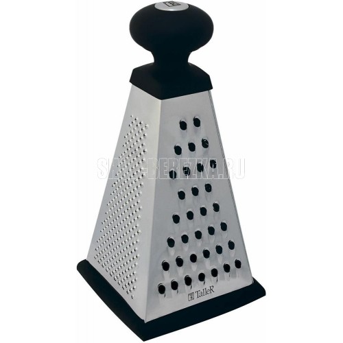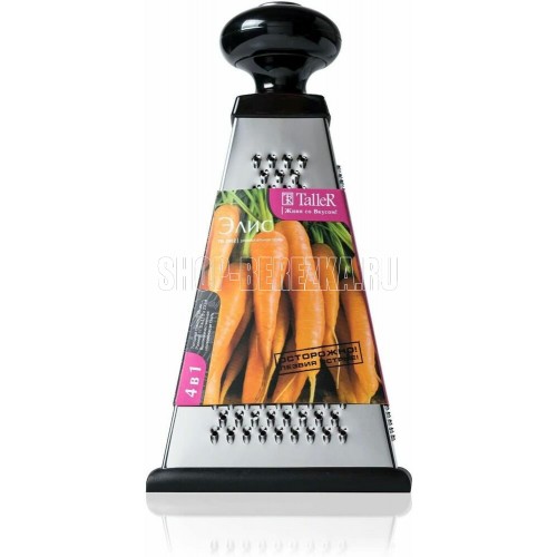 Высота 23 см.Основание 11.5 х 11.5 см. 4 вида лезвий: крупная терка,средняя терка,мелкая терка, шинковка, Ручка удобной формы не выскальзывает из рук даже при намокании. Нескользящий силиконовый протектор на основании предотвращает скольжение во время ис
