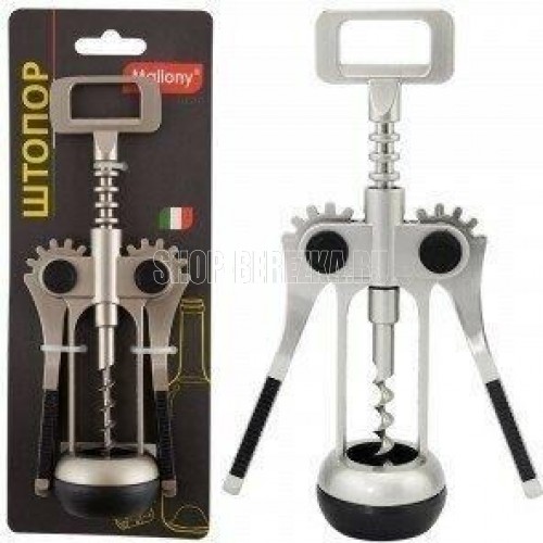 MALLONY Штопор ELETTO, сплав цинка никелированный, ABS пластик (ручка) (004187)