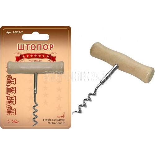 Простой Т-образный штопор подойдет для каждого дома, занимает мало места и прост в использовании. Его даже можно взять с собой в поездку или на пикник. Штопор «Ретро» - это простая конструкция, состоящая из металлической спирали и деревянной ручки, выполненная в классическом дизайне. Приспособление отлично справляется с любыми винными бутылками. Чтобы открыть бутылку, воткните лезвие строго посередине пробки, вкрутите внутрь и аккуратно вытягивайте за ручку. Всего несколько движений и пробка снаружи. Приспособление не требует особого ухода, его достаточно промывать после использования обычной проточной водой. При сильных загрязнениях могут понадобиться моющие средства. Штопор небольших размеров практически не занимает места, главное, хранить острое изделие подальше от детей. Штопор «Ретро» - хит продаж, пользующийся спросом уже несколько лет. Это не удивительно, ведь приспособления для откупоривания бутылок может понадобиться дома, на даче, во время поездки, в гостях и много где еще
