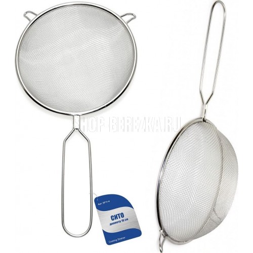 Сито – это простое и нужное приспособление, которое понадобится в каждом доме. Изделие используется для промывания овощей, фруктов, ягод, процеживания компотов, травяных отваров и слива макарон. Сито изготовлено из нержавеющей стали, состоит из металлической сетки, ободка и ручки. Ручка удобна не только во время использования сита, но и для размещения его на крючке. На ободке есть петельки, фиксирующие инструмент на посуде — кастрюлях, пиалах, мисках. Материал отличается долговечностью, не вступает в реакцию с продуктами питания, не деформируется со временем. После использования промыть изделие с моющим средством. Диаметр 16 см.